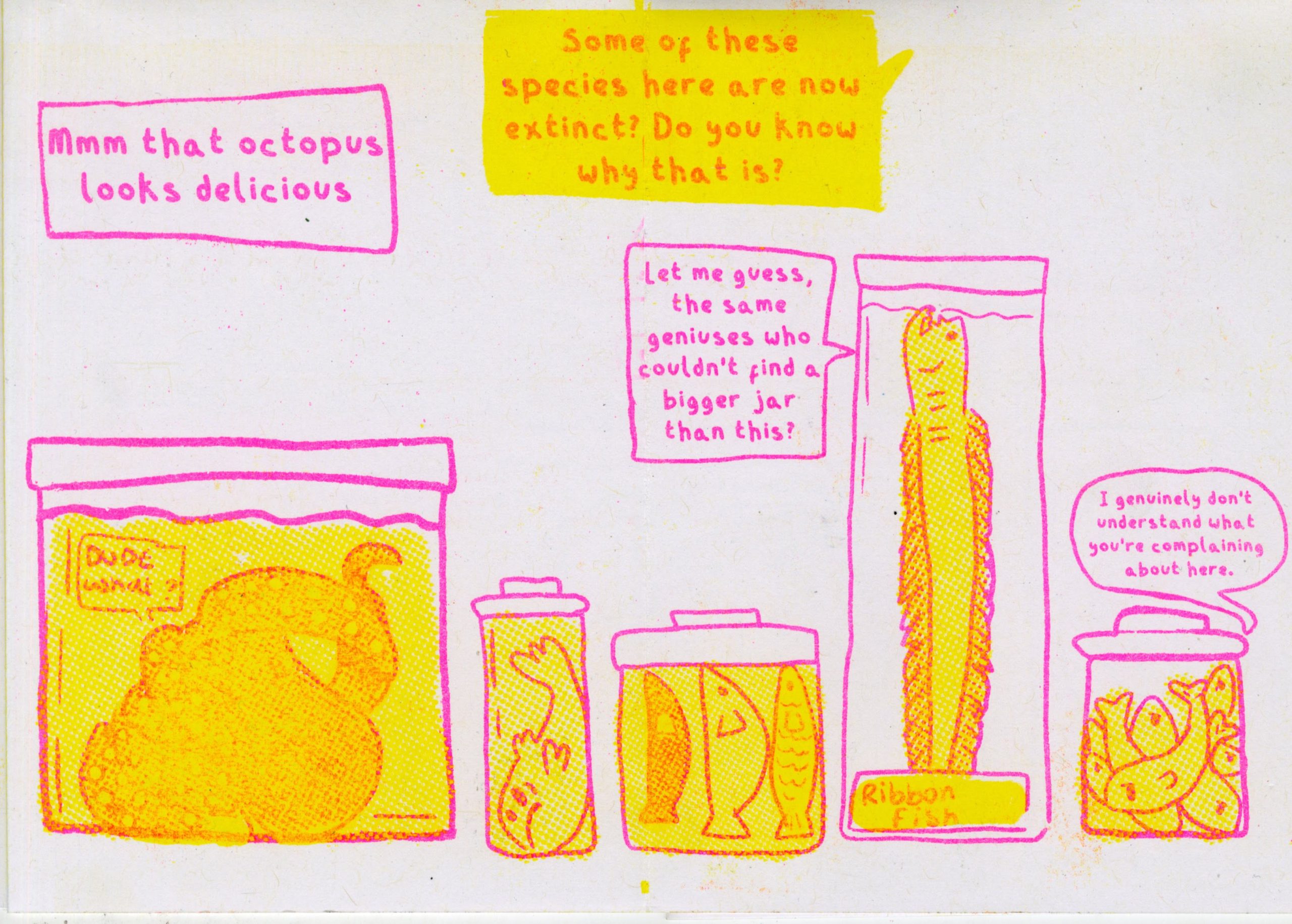 Just some pickled fish in a museum listening to the visitors.
